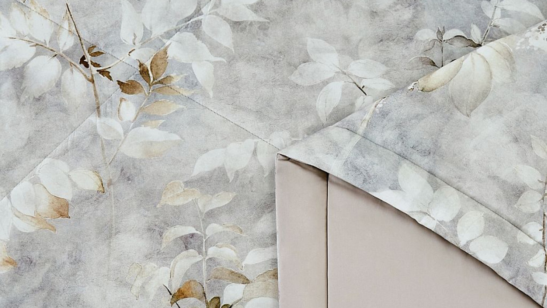 Вы будто смотрите через затуманенное стекло и видите заснеженные веточки, кое-где оголившиеся до пожухлых листочков пряного цвета, или насыщенно-коричневых ягод, потемневших от первого мороза) Напечатанный кант морозно-серого цвета обрамляет наволочки 50*70 см.