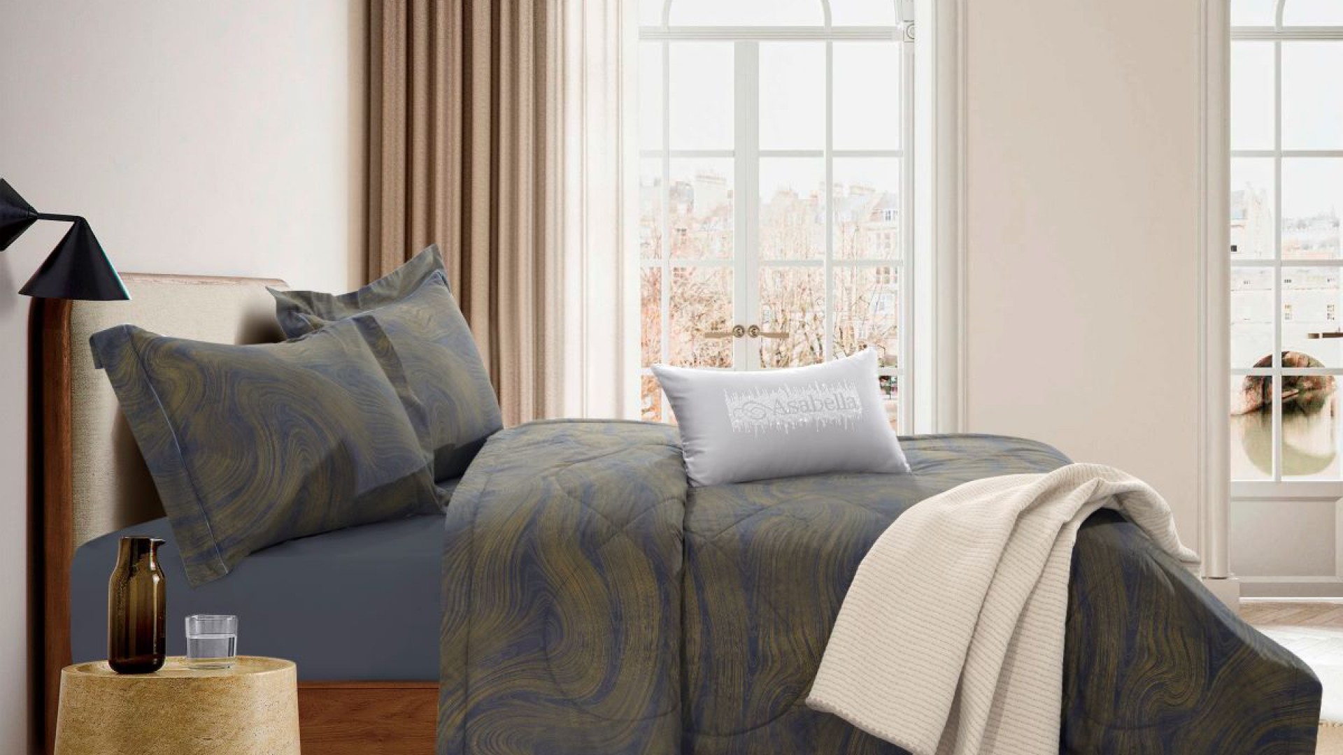 Комплект из 2-х одеял ("одеяло-комфортер" - используется вместо пододеяльника), простыни и наволочек из египетского хлопка.