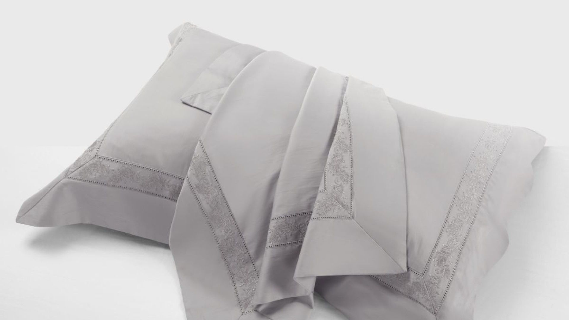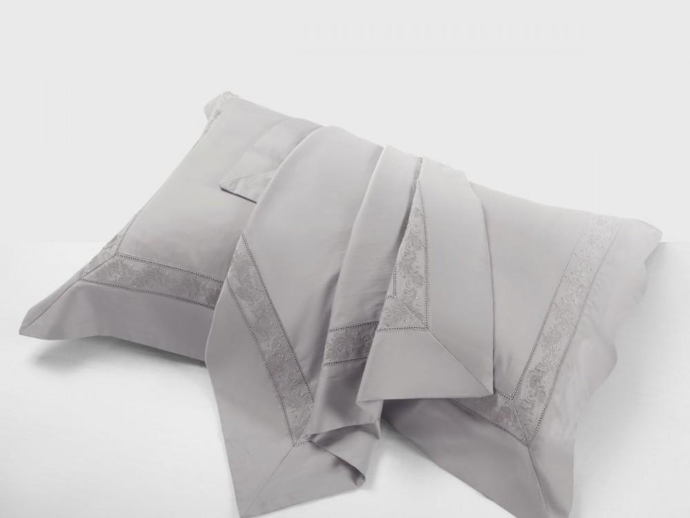 Светло-стальной цвет и тончайше выполненная вышивка с благородным завитком, обрамленная пробитой мережкой, дарят этому артикулу французский шик вне времени, сезонности и перепадов температур, настроения)