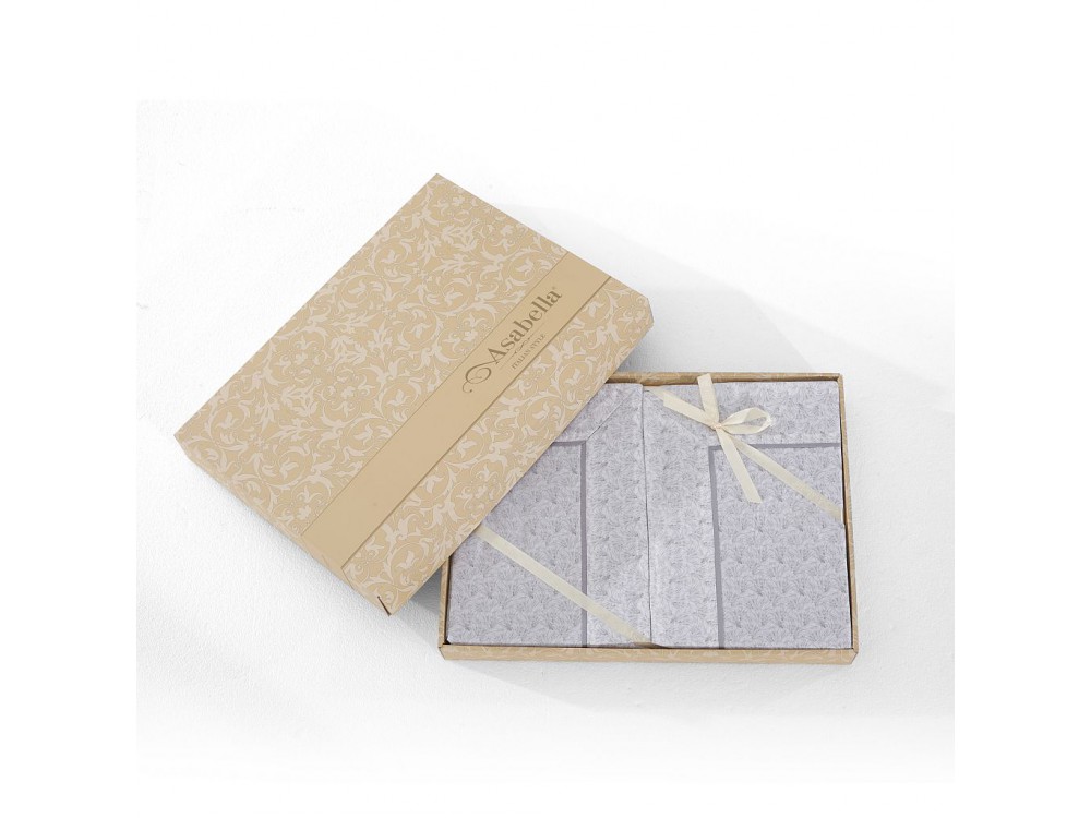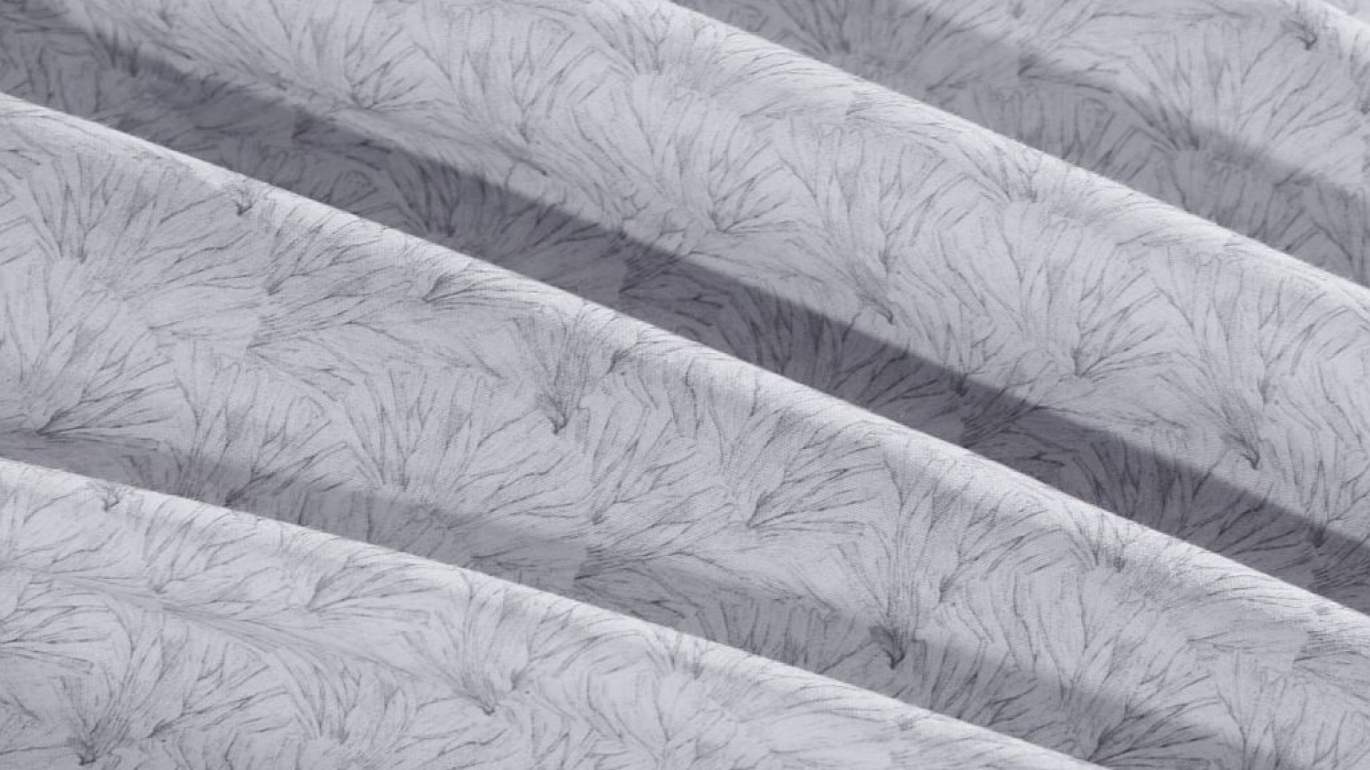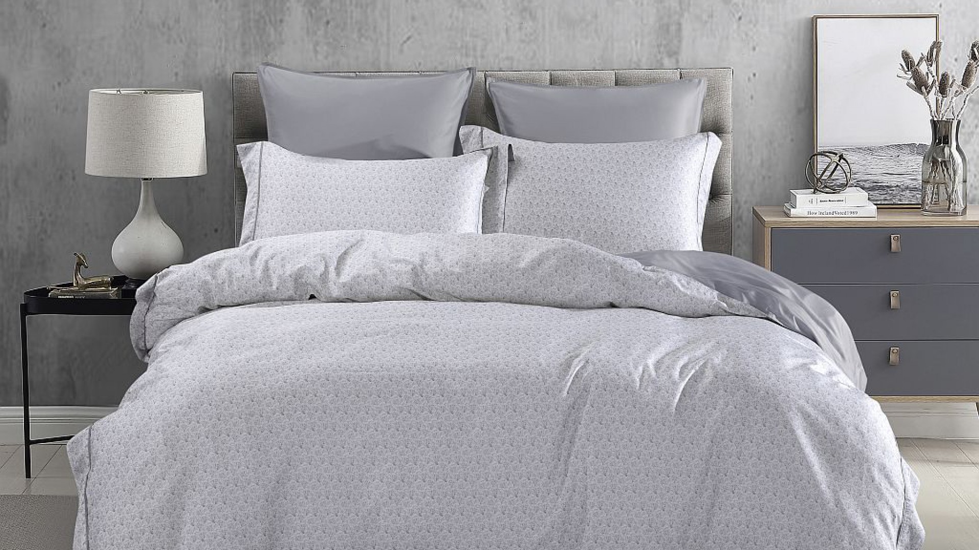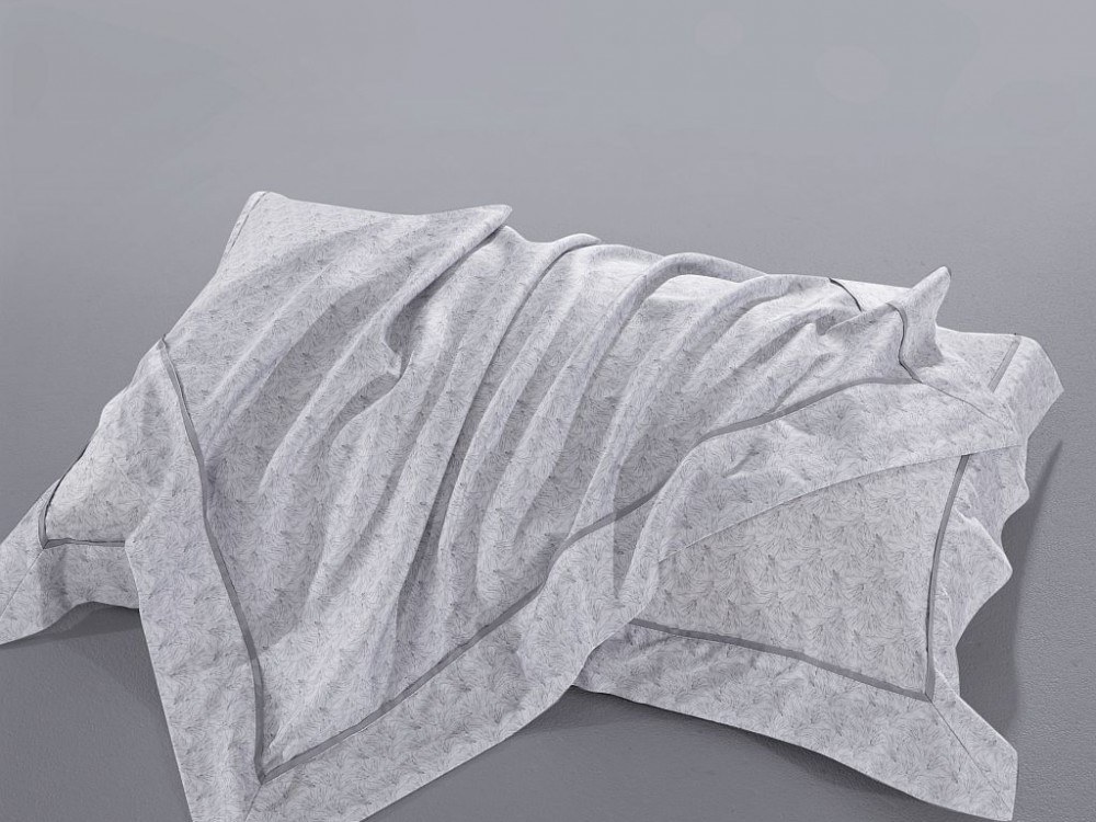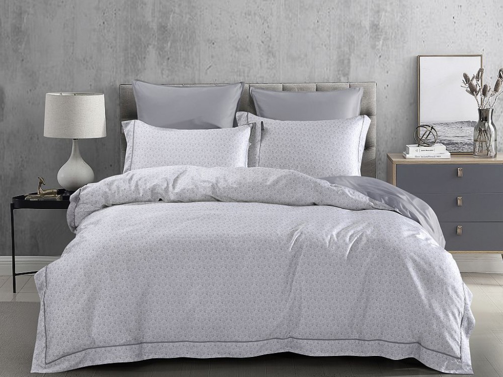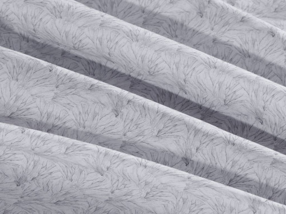 Серая гамма во всем своем великолепии: прохладность подтонов смягчается нежным рисунком тонких лепестков, будто выписанных тушью японским мастером калиграфии. В комплекте лаконичная светло-серая простынь.