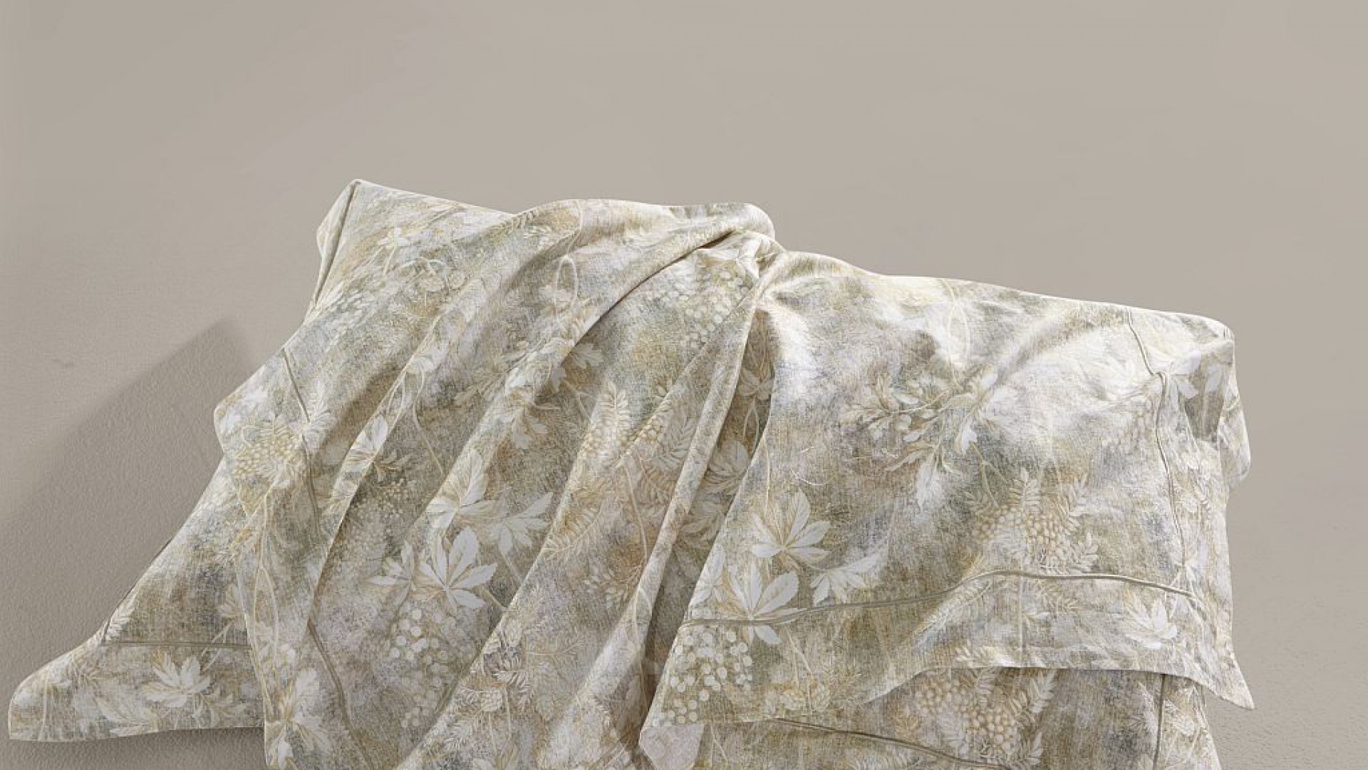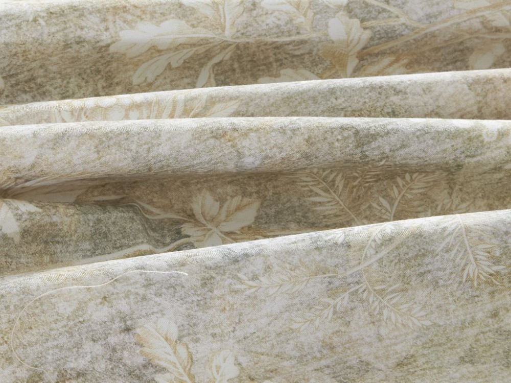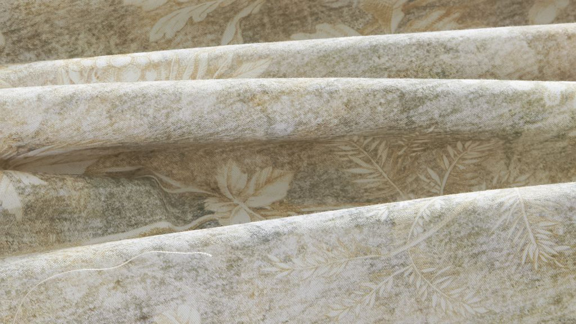 Бежево-оливковый дизайн с цветочными мотивами, проглядывающими через предрассветную дымку. Ткань-компаньон в цвете тауп.
