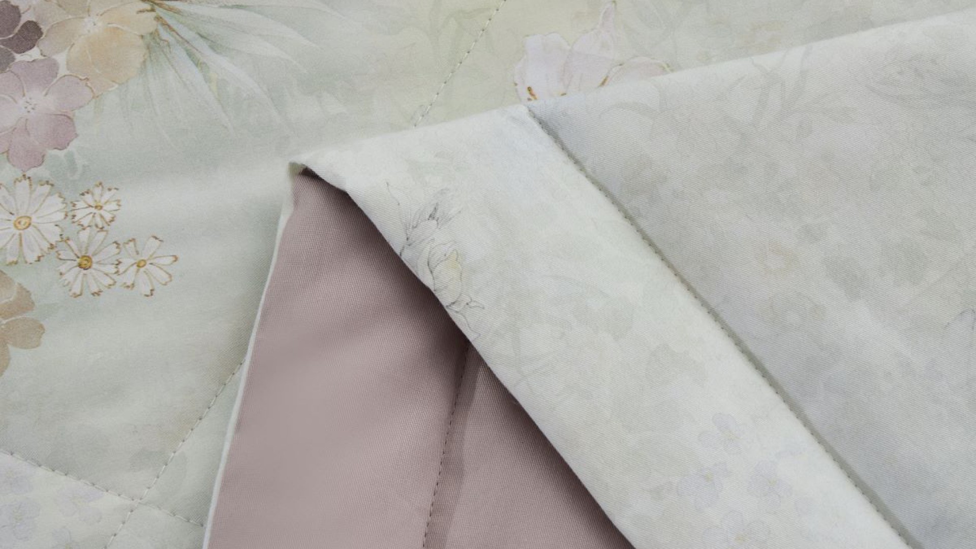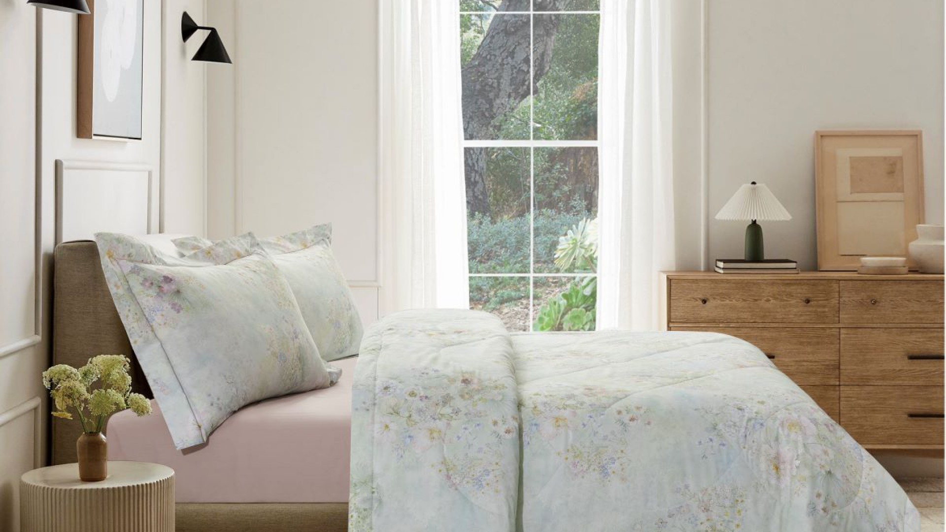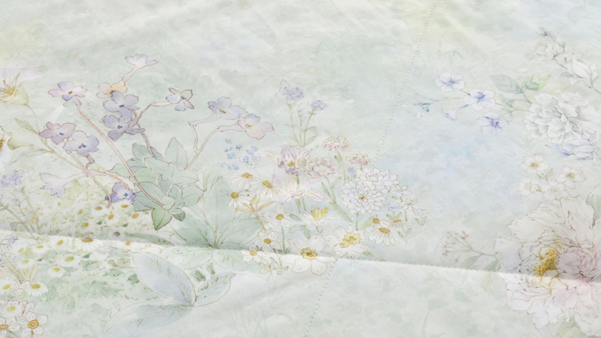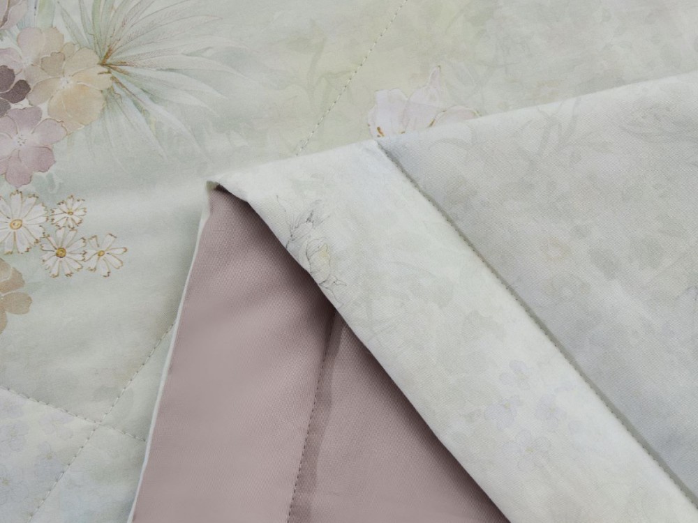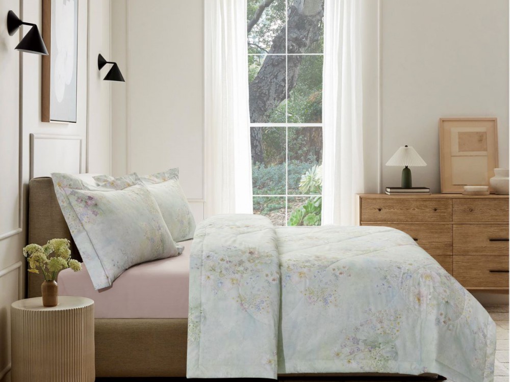 Воздушный дизайн, наполненный нежностью акварельных цветов. Трогательность комплекта подчеркнута тканью-компаньоном в цвете ягодного щербета.